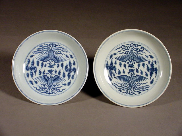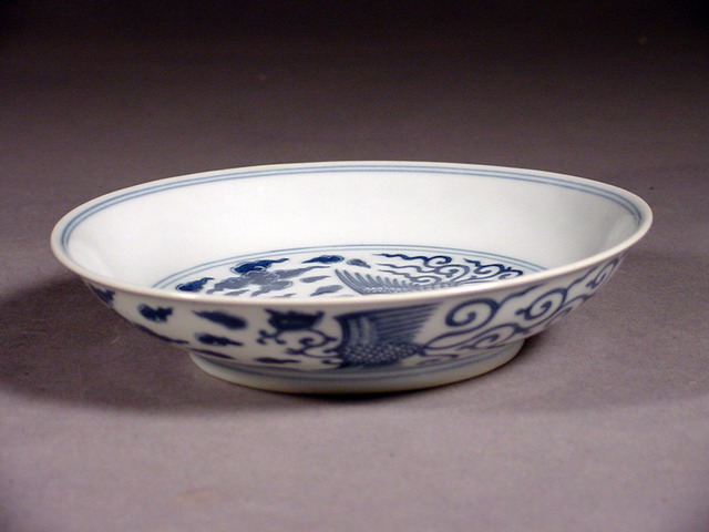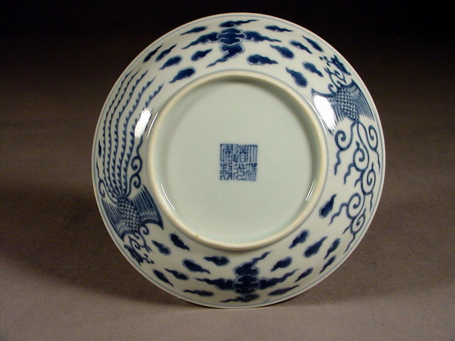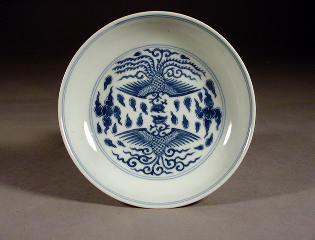 道光 Daoguang Imperial Blue & White Double Phoenix Saucer