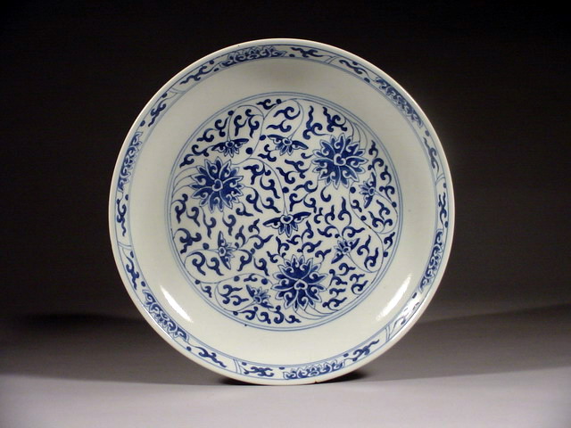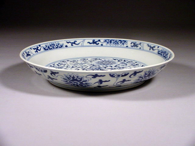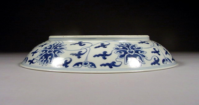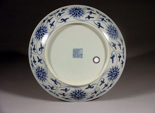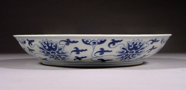 lotus flowers within a double line border. Just beneath the rim is a border of