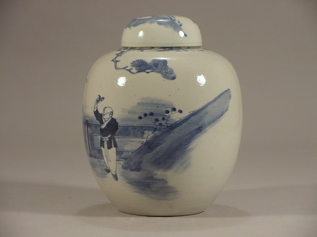 光緒 Guangxu Blue & White Figural Ginger Jar