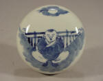 A large blue & white ovoid shaped