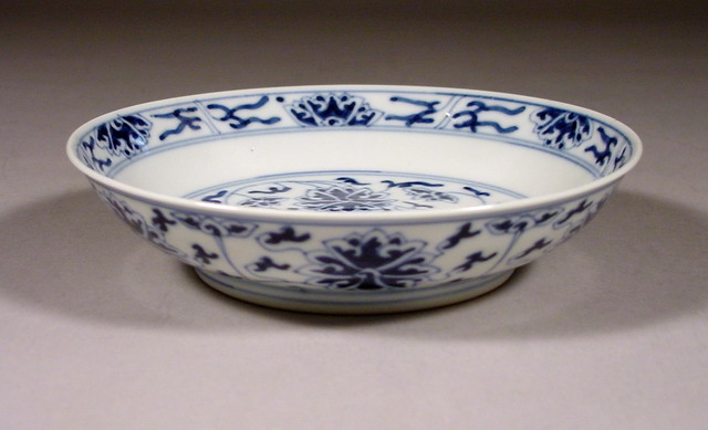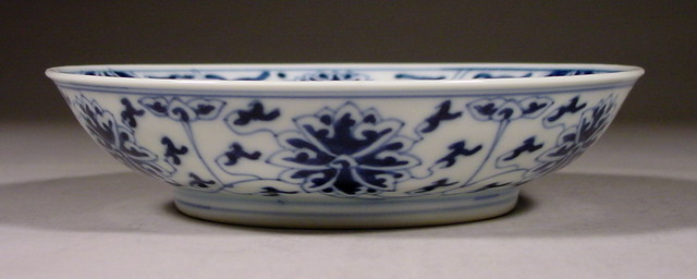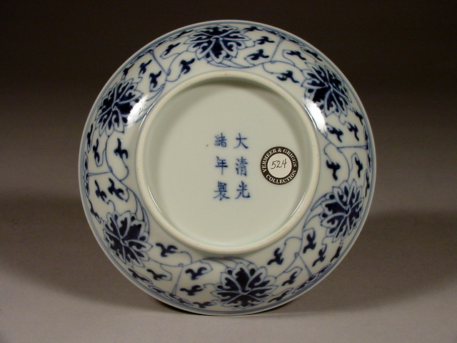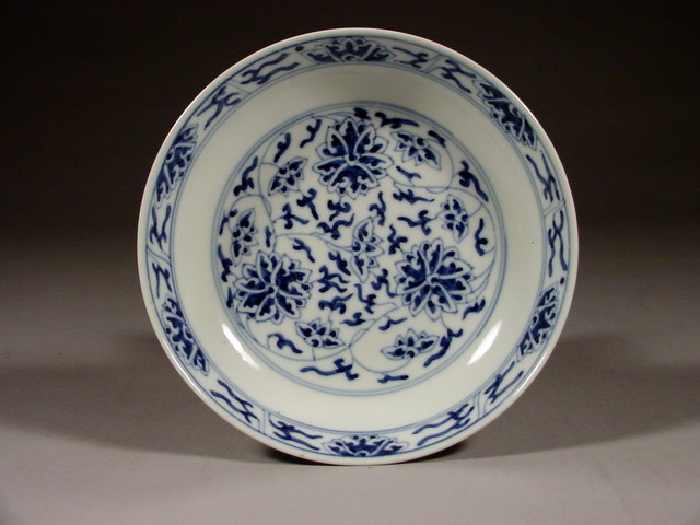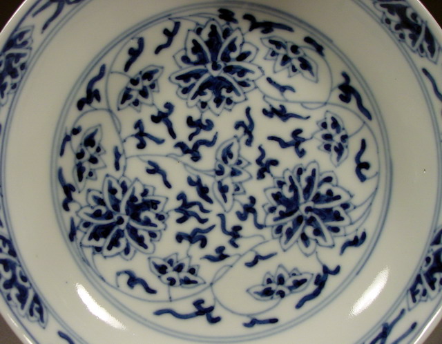 lotus flowers within a double line border. Just beneath the rim is a border of