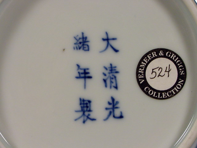 alternating half blossoms and tendrils. On the base in kaishu script is