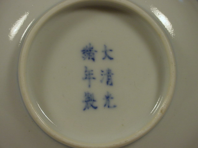 with a double line border just below the rim and another above the foot. On the base written in kaishu script is the mark and period of the Guangxu