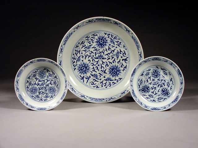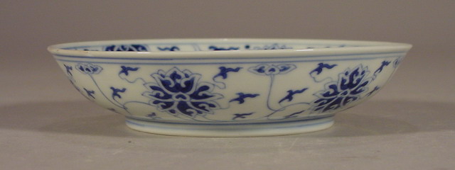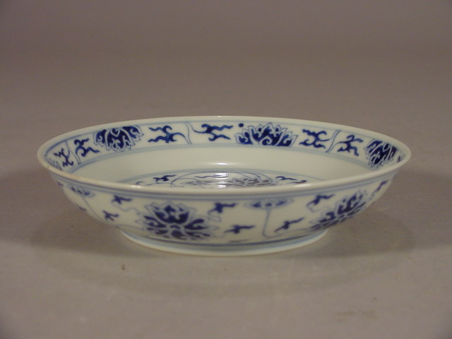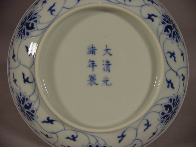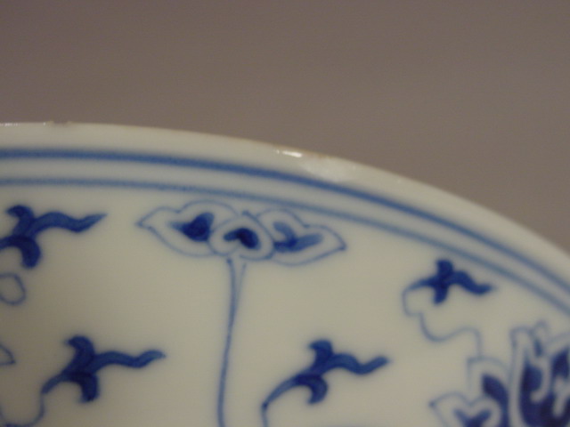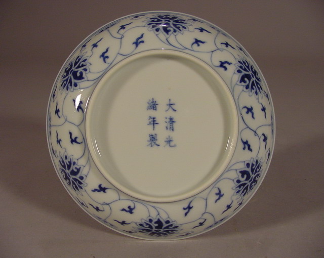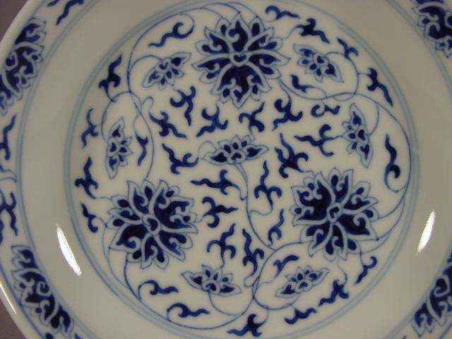 lotus flowers within a double line border. Just beneath the rim is a border of