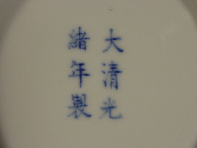 white Imperial Guangxu mark and period saucer dish raised on a ring foot, the sides