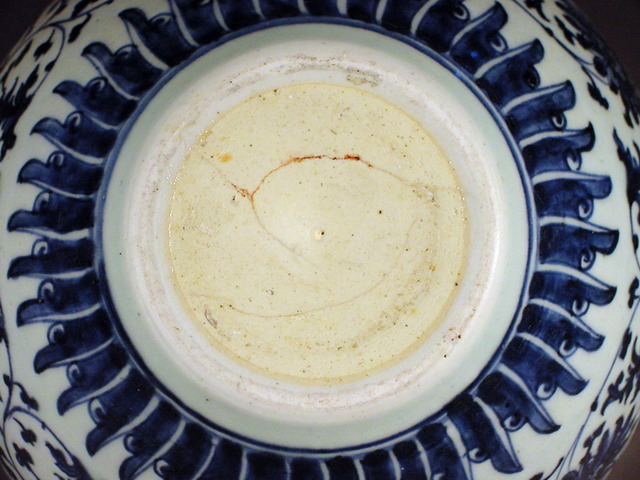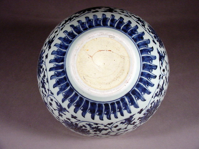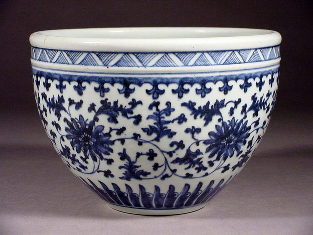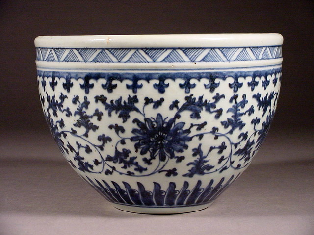 康熙 Kangxi Blue & White Scrolling Lotus "Gang" Fish Bowl