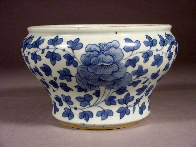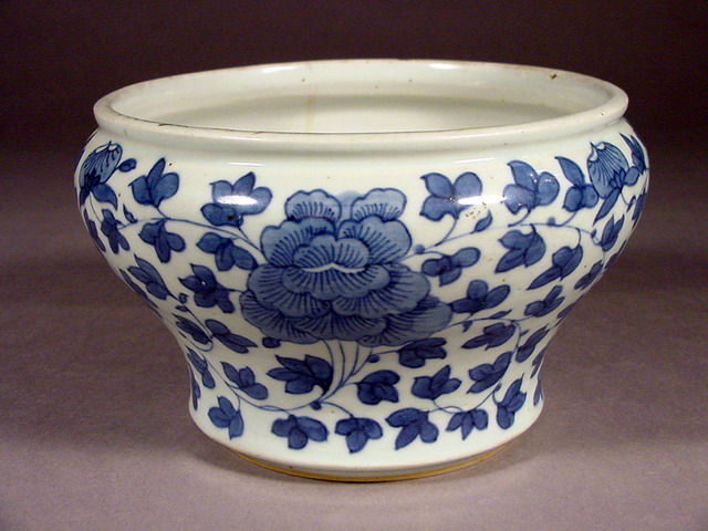 raised on a stepped foot decorated with scrolling blossoming peonies in washes