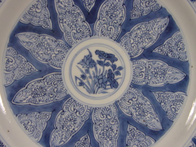 lotus and peony plants, the cavetto left as an undecorated border. The rim of