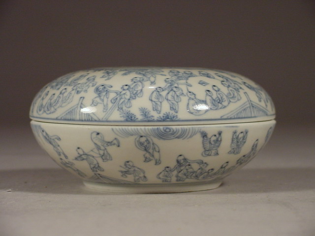 康熙 Kangxi Blue and White 100 Boys Paste Box