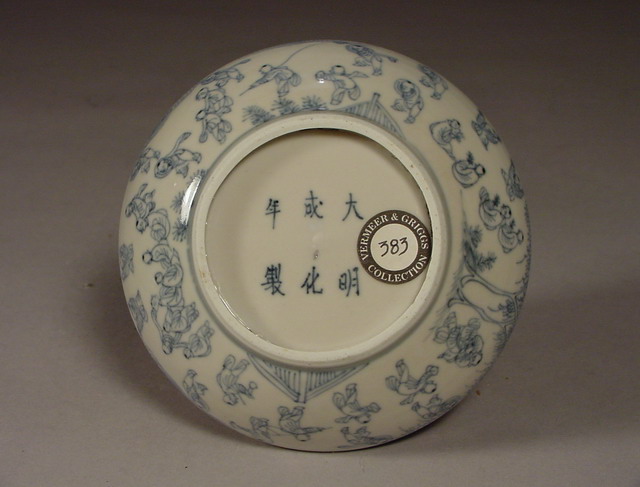 in dan miao qing hua technique (penciled blue & white). The