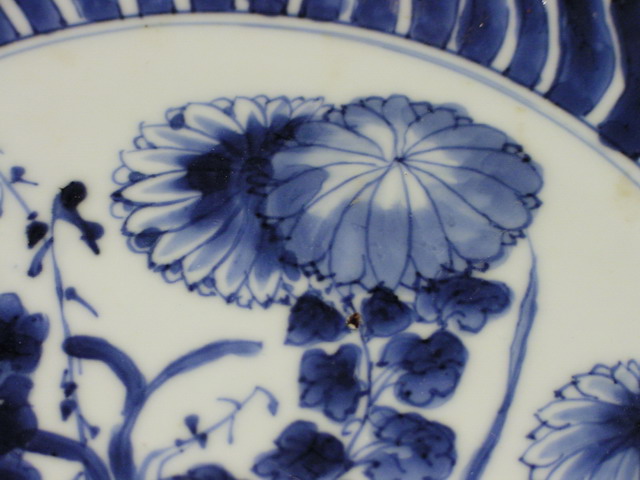 Enlargements of 康熙 Kangxi Blue & White Aster & Chrysanthemum Plate