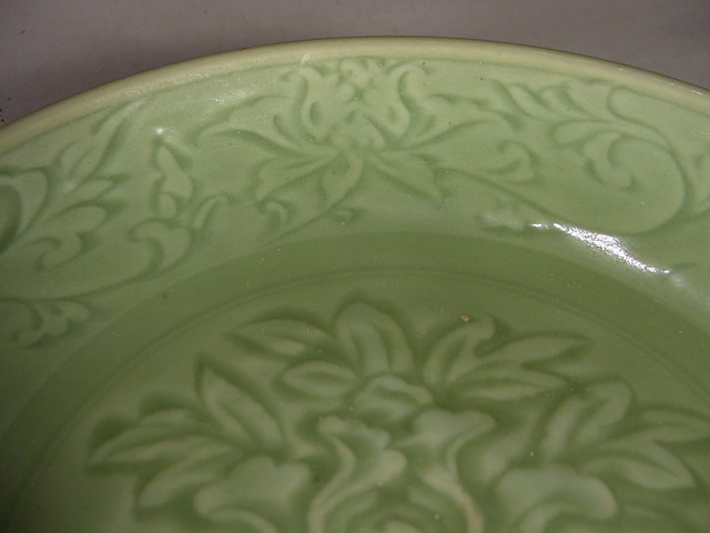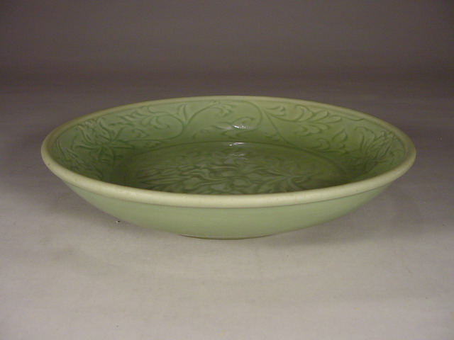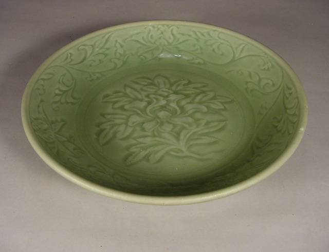 with a meandering peony scroll, the reverse undecorated. The dish is
