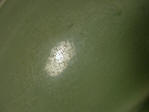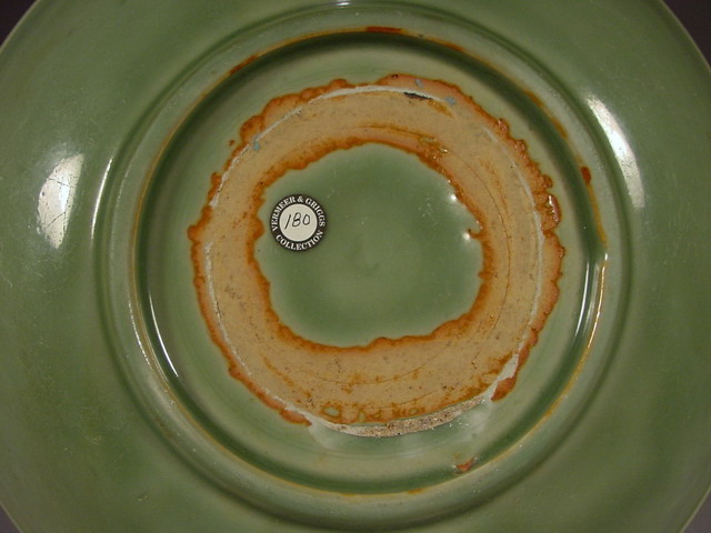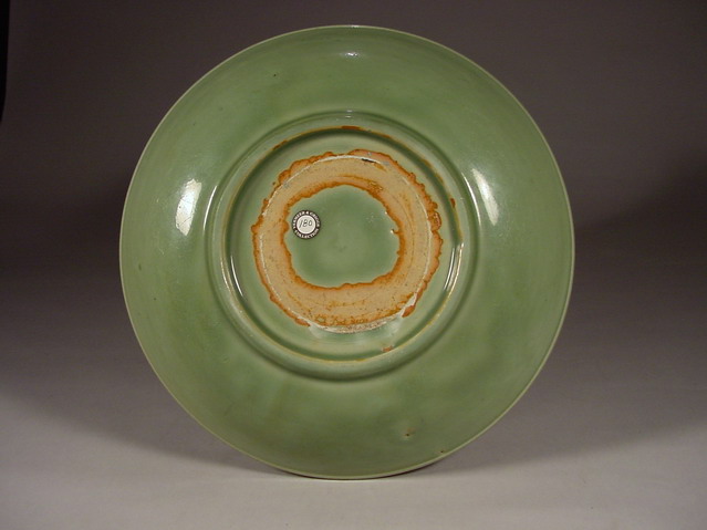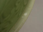 covered overall in a thick pale olive-green translucent glaze. An unglazed