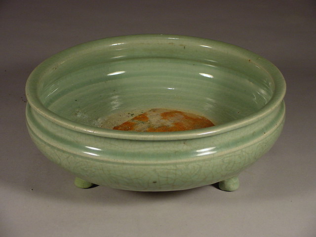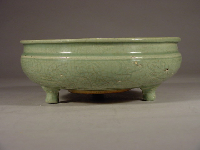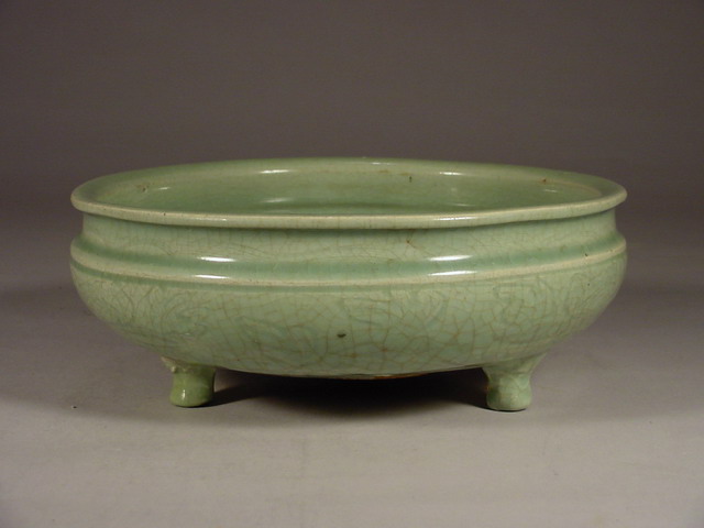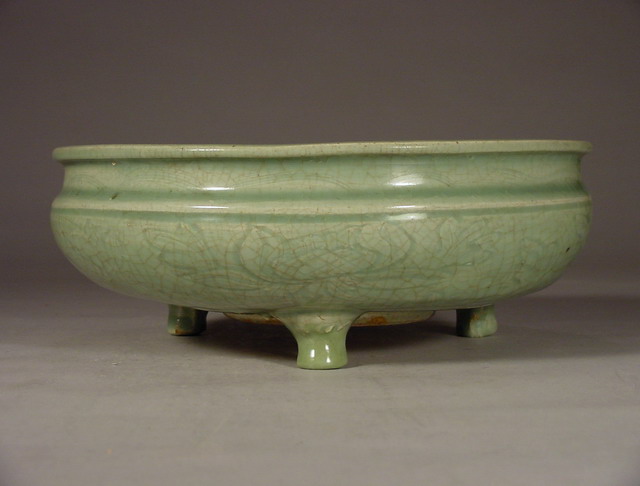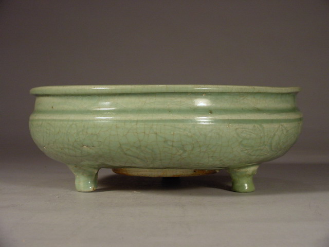 早明 Zhejiang Longquan celadon tripod censer, the bowl