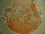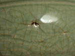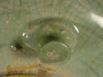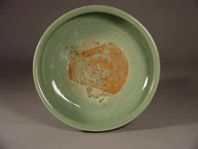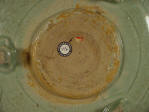 bluish-green transparent glaze. The unglazed countersunk base and patch on