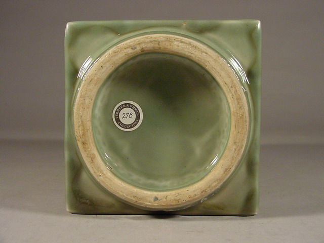 where the glaze has pooled in the recesses of the molded ribs. The base is glazed with only the footrim exposed. The vase shape first appeared in Neolithic hollow jade