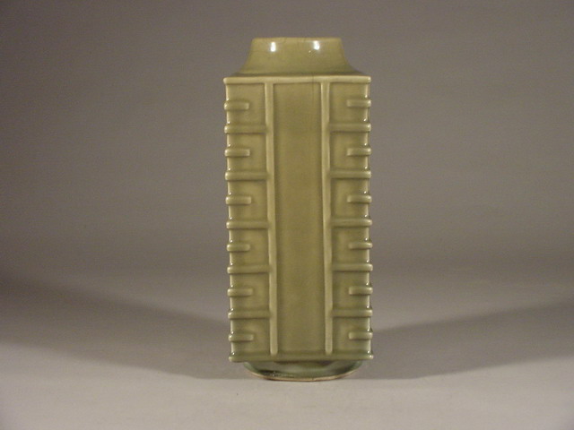 cong vase (cong shi ping). The tall squared body surmounted by a cone-shaped neck rests on a cylindrically formed