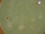 covered overall in a thick olive-green translucent glaze. An unglazed