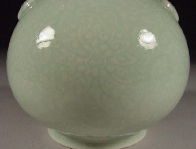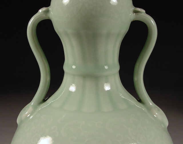 Enlargements of 乾隆 Qianlong Celadon Garlic Head Bottle Vase (Suantouping)