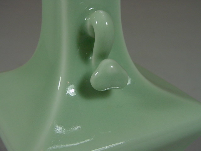 Enlargements of 乾隆 Qianlong Celadon Glazed Squared Ruyi Handled Vase