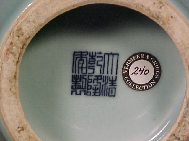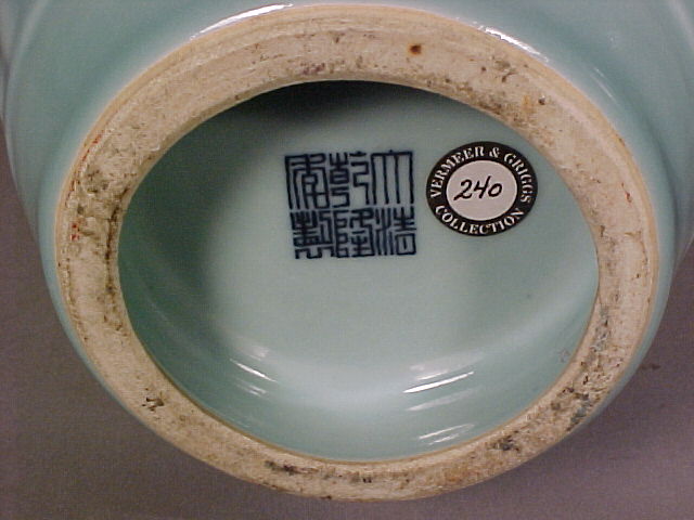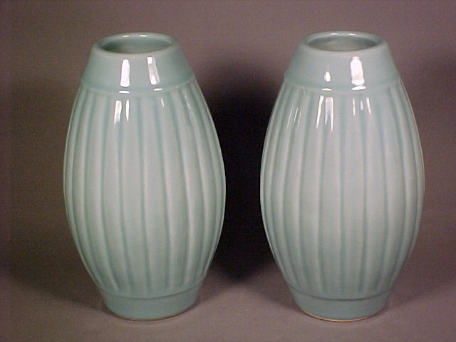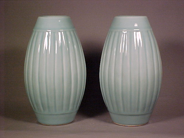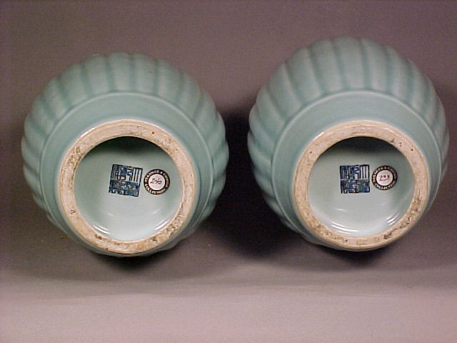 and top. The vases covered in a fine blue hued celadon glaze and only the