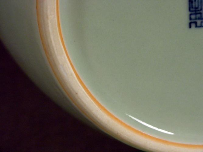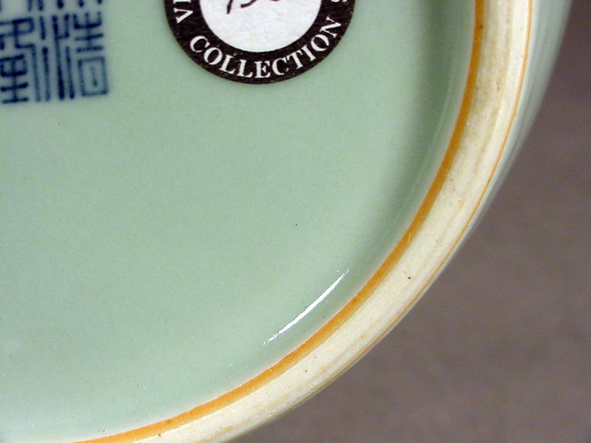 Enlargements of 乾隆 Qianlong Celadon Crescent Handled Tea Jar (Yueyo Er Guan)