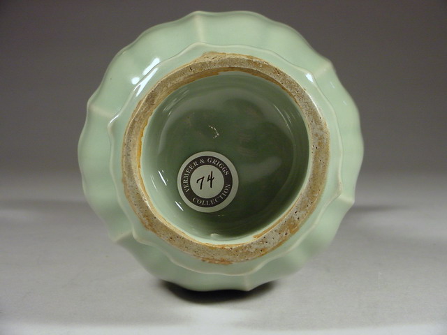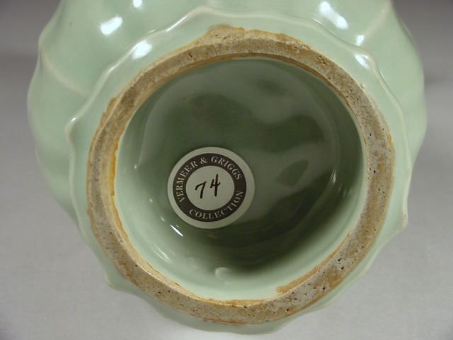covered in an unctuous, transparent sea-foam green celadon glaze known by the