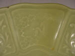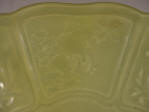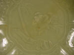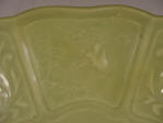 birds roosting in bamboo. The entire dish is covered in an olive toned celadon