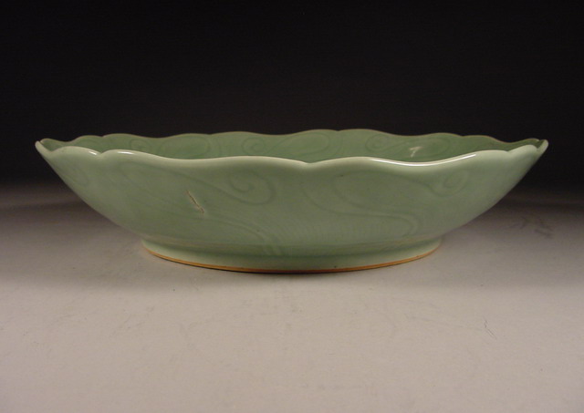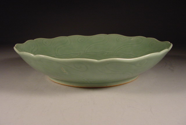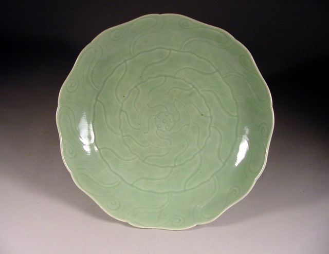 雍正 Yongzheng Large Foliated Celadon Lotus Dish