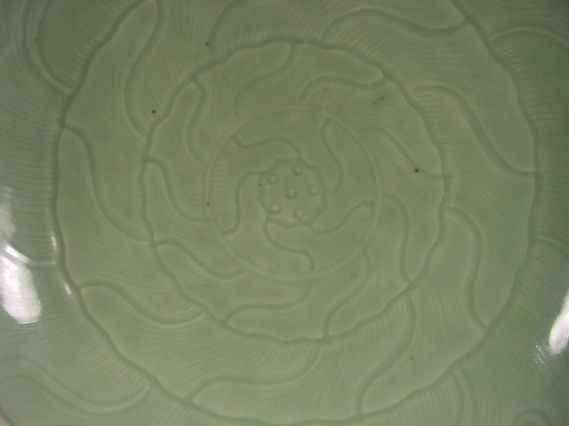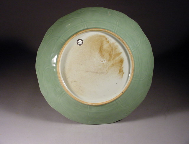 A large 18th century celadon dish of