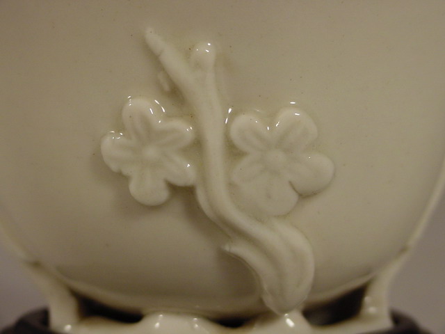 prunus flowering branches that form an openwork base, covered in an ivory toned