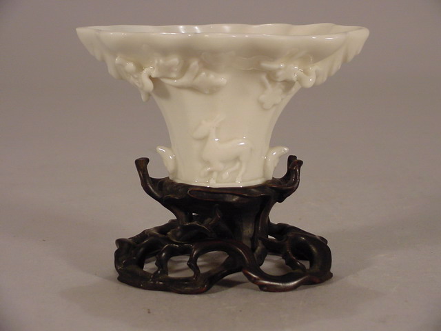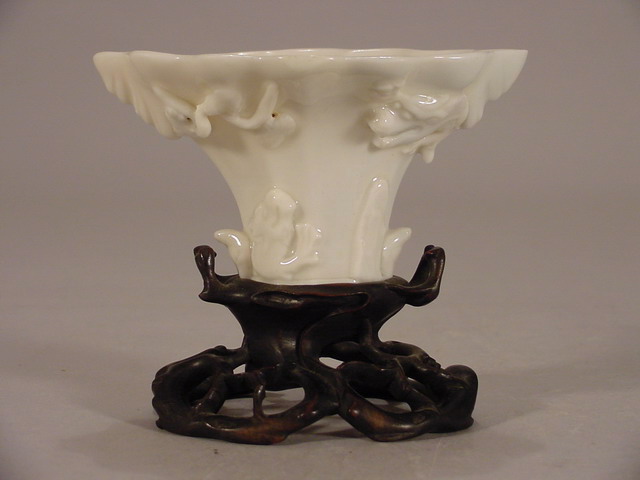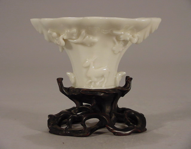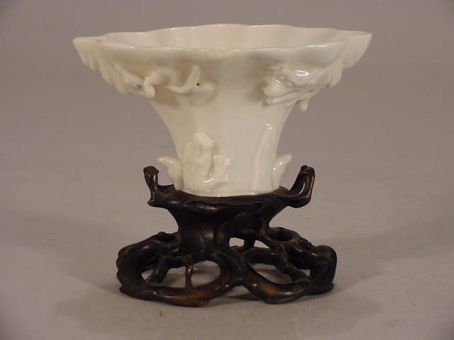 Ming Dehua libation cup modeled in the form of a rhinoceros horn