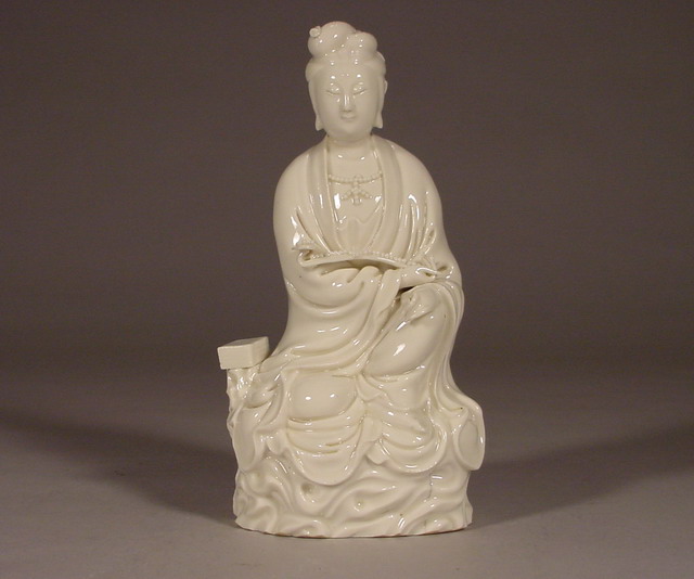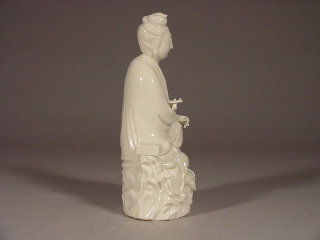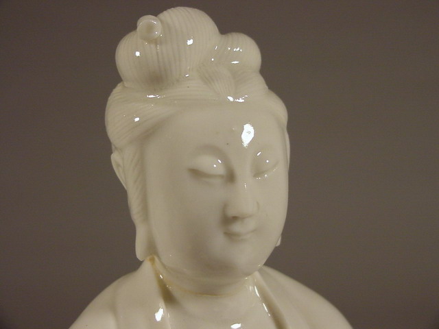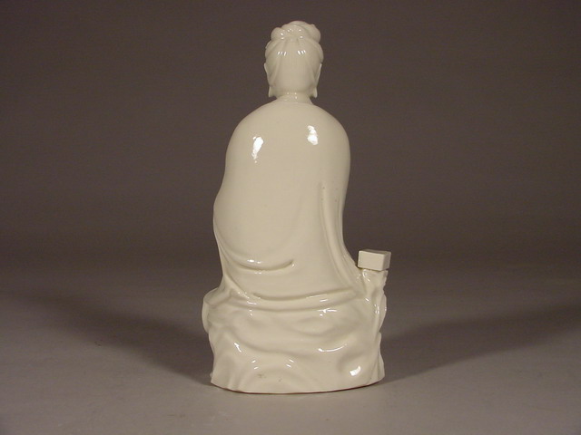 figure is covered in a sumptuous soft white glaze. On her back is an