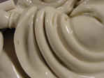 voluminous flowing robe that drapes over the dais. The robe is open at the chest to reveal a beaded