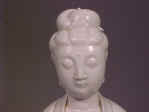 translucent creamy glaze. The deity holds the scroll of wisdom in delicately modeled