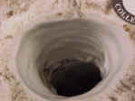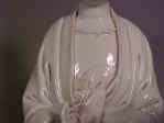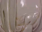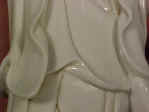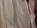 showing through the milky glaze. Her feet peek from beneath her voluminous