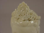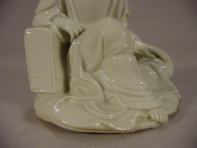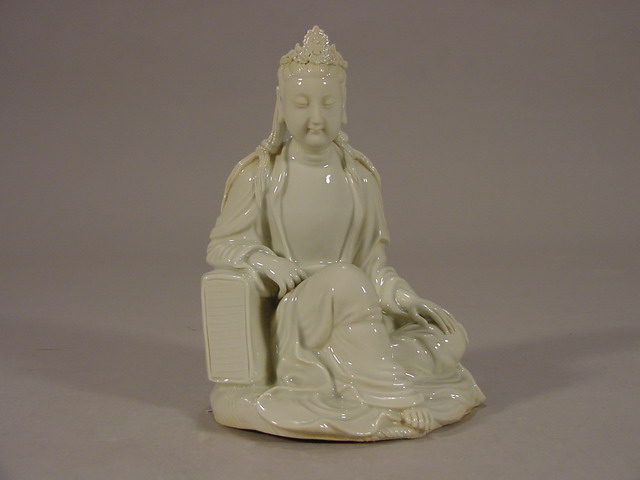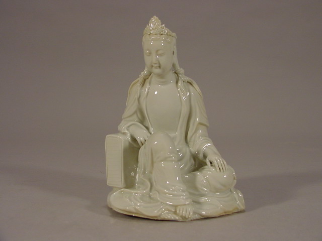 knots, three tresses cascade over her shoulders. She is seated at 'royal ease' (rajalalitasana), her right arm resting on a large book. |