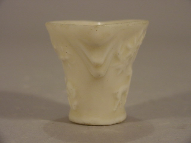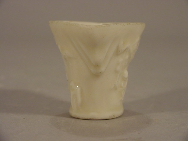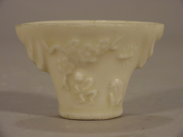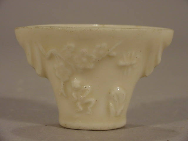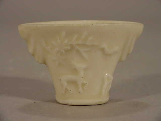 in an ivory toned glaze. The cup applied with a stag beneath a flowering