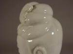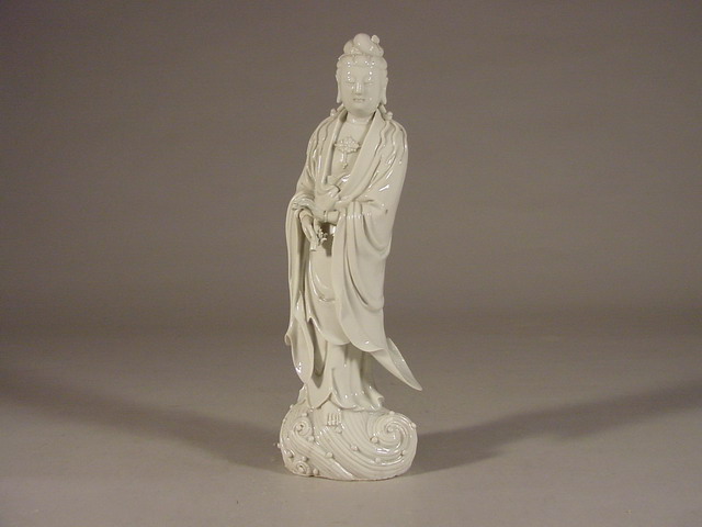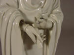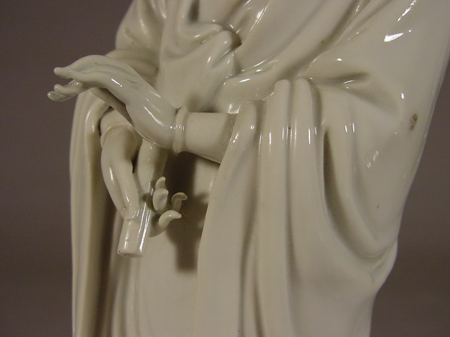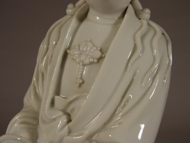 a beaded necklace and in her hand she holds the scroll of wisdom. |