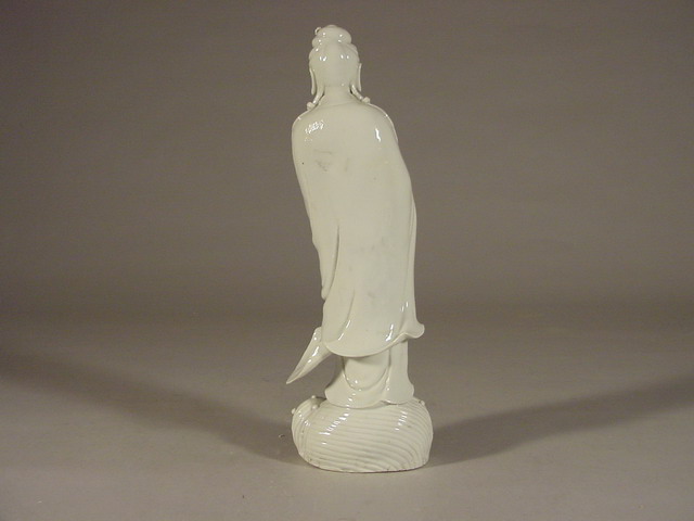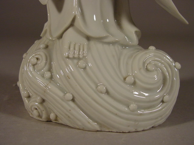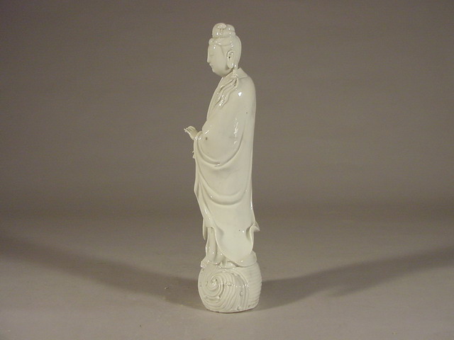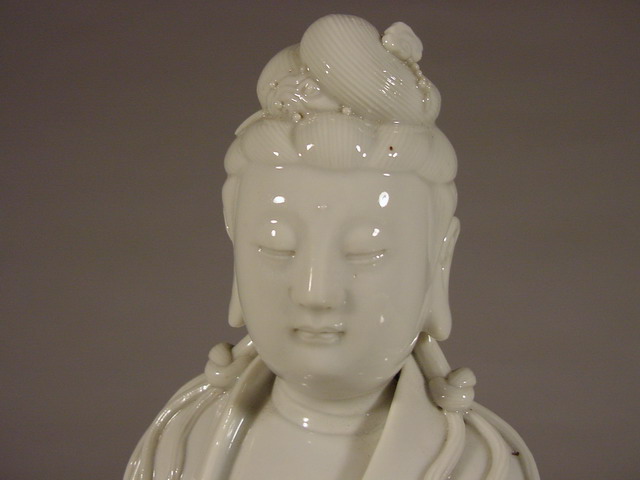 of rolling waves, her hair piled and pinned in a chignon partially covering a