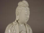 tiara with knotted hair falling over both shoulders. Her open robes reveal