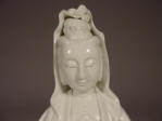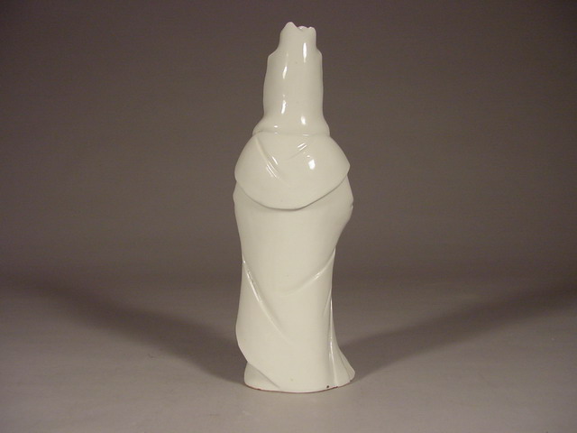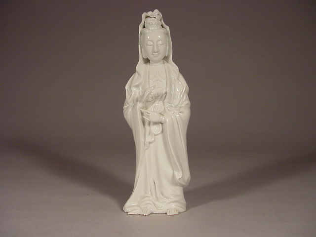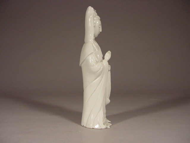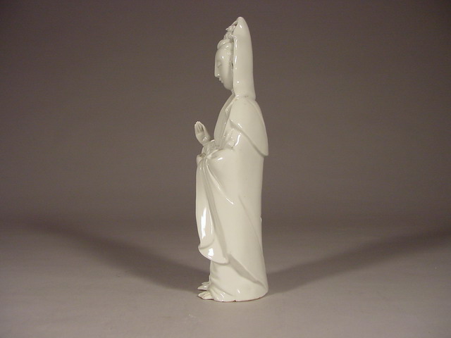 figure of Guanyin modeled in a standing position. Her face lowered with a