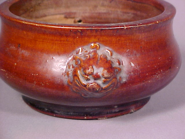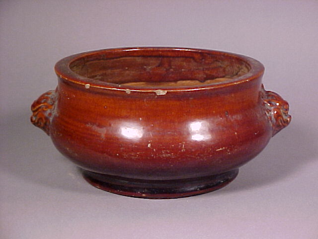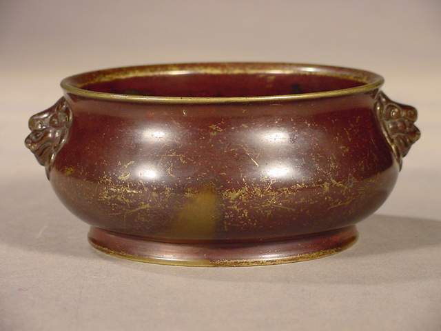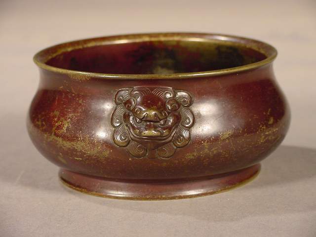 with opposing male lion-headed handles mounted on the shoulder. The footrim is
