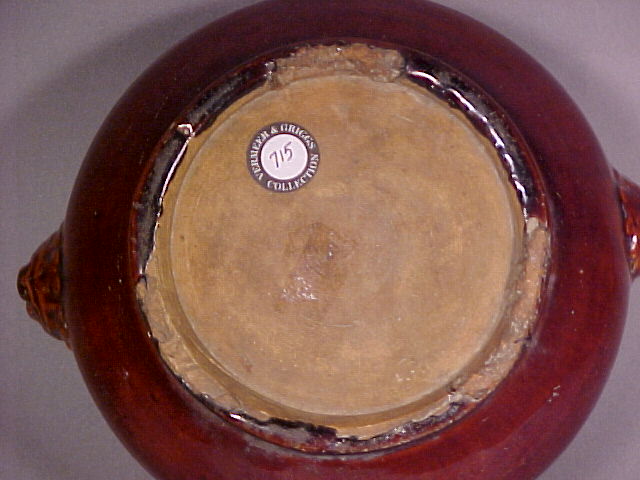 compressed bulbous body sits atop a splayed foot, rising to a slightly everted flat rim