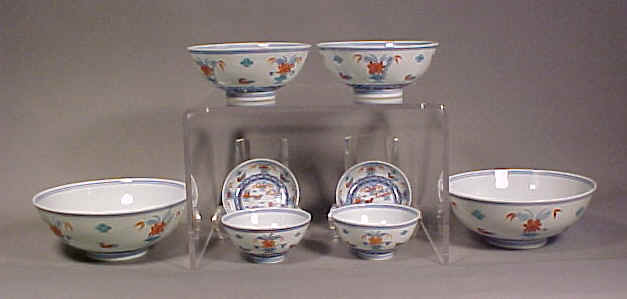 in the doucai palette, the bowls with rounded sides rising to a hint of a