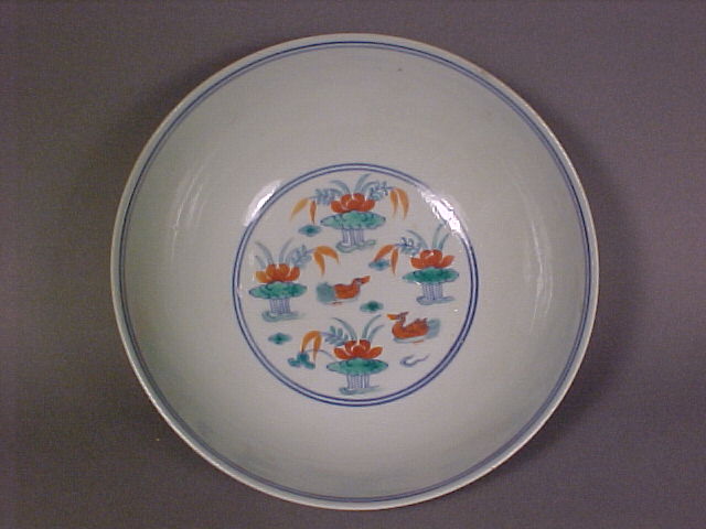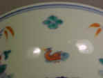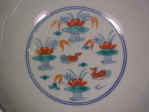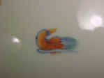 ducks in a lotus pond encircled by concentric lines. The interior edge