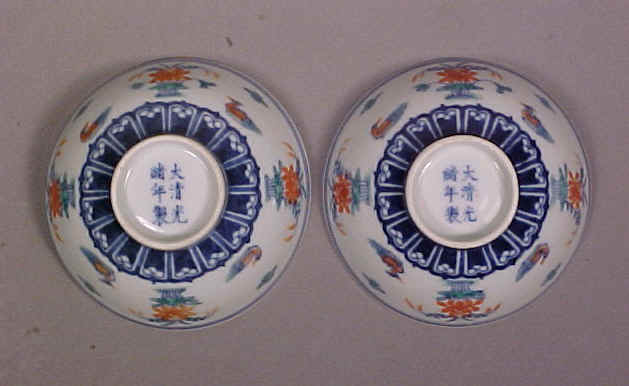 Reverse of bowls showing the reign mark of the 光緒 Guangxu emperor