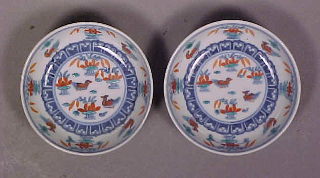 is a roundel of further ducks in a lotus pond encircled by concentric lines. The interior edge also treated with a double line border. On the exteriors