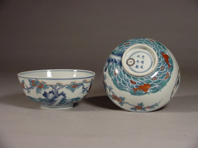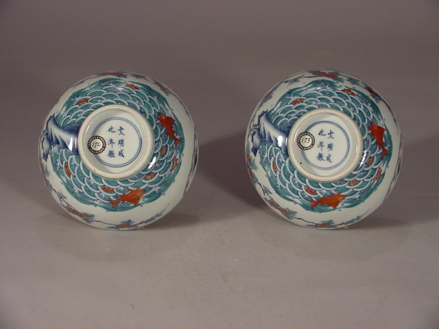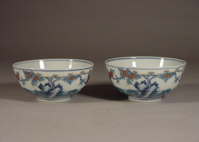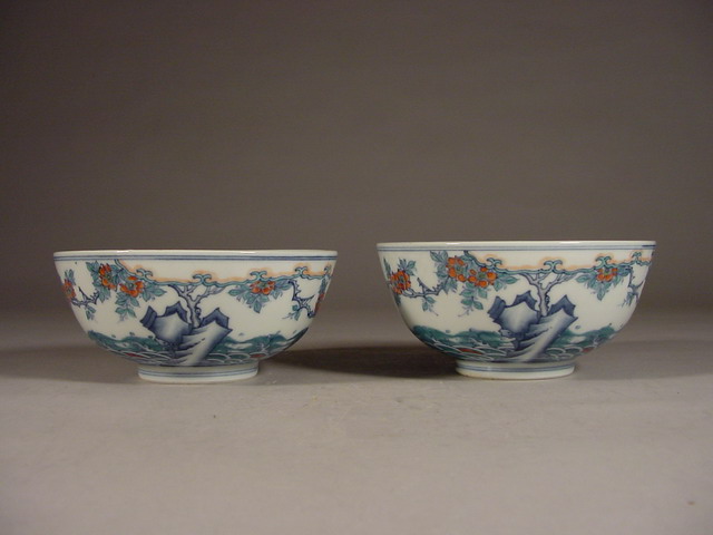 A very rare and fine pair of doucai (joined/contending colors) bowls,