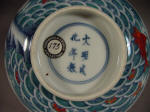 leaping red carp and a conch shell. On the interior is a similar scene,